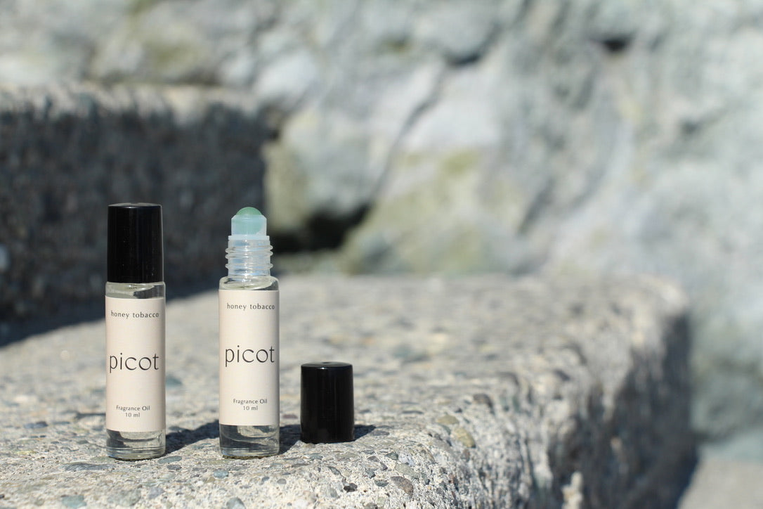 Honey Tobacco Rollers are handmade in Canada with a custom, non-toxic fragrance, and fractionated coconut (MCT) oil.